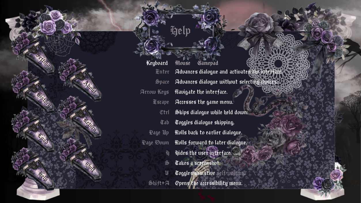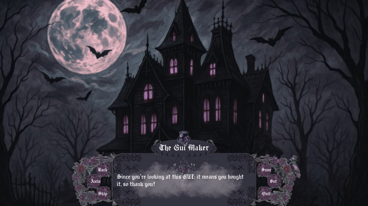 A Gothic themed GUI for Ren'py with many features and two asset gift packs !